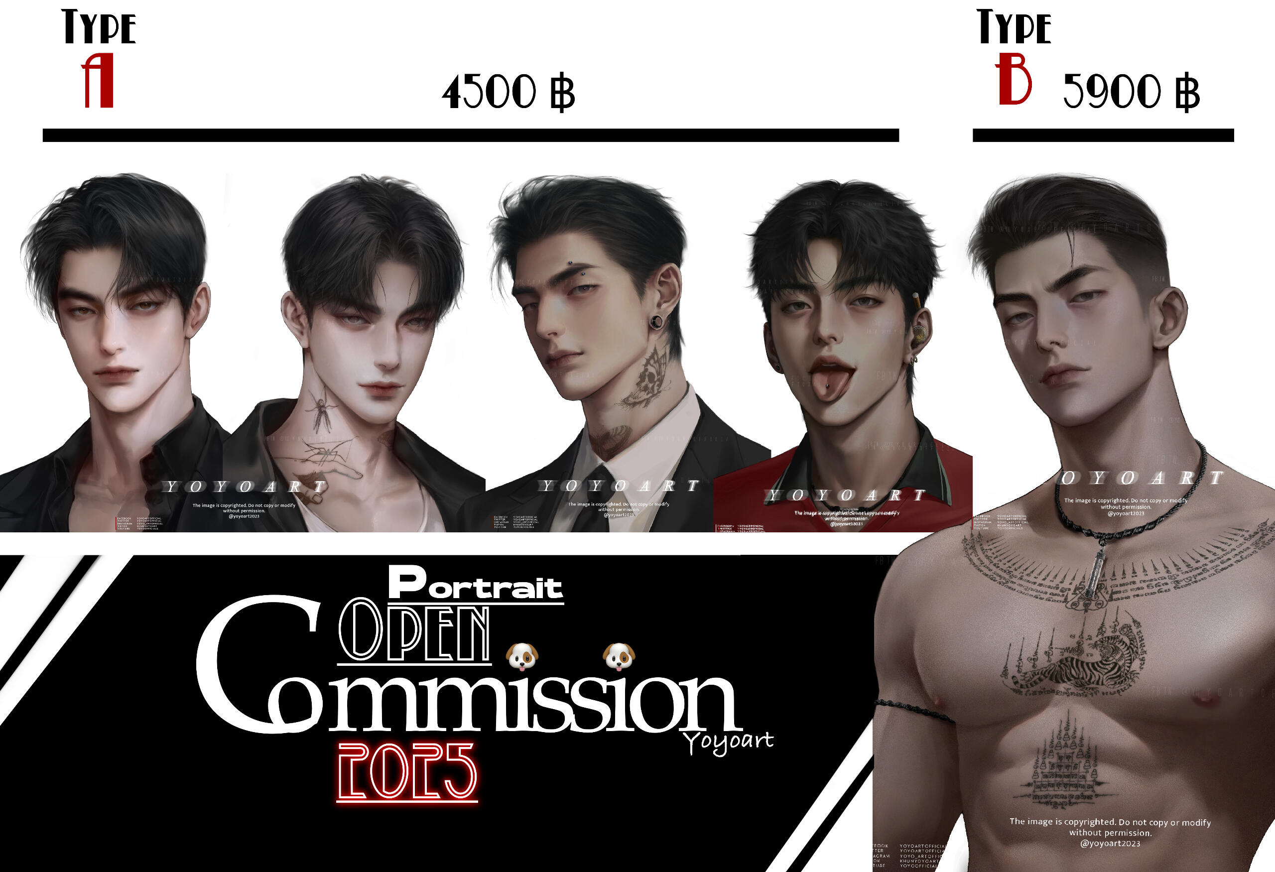 • Type A: หัว–ไหล่ ราคา 4,500 บาท(หากมีมือ คิดเพิ่ม 300 บาท/มือข้างแรก และ 200 บาท/ข้างถัดไป)